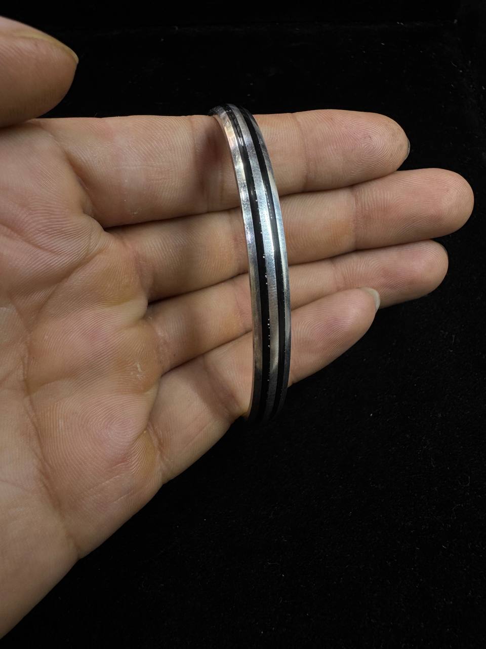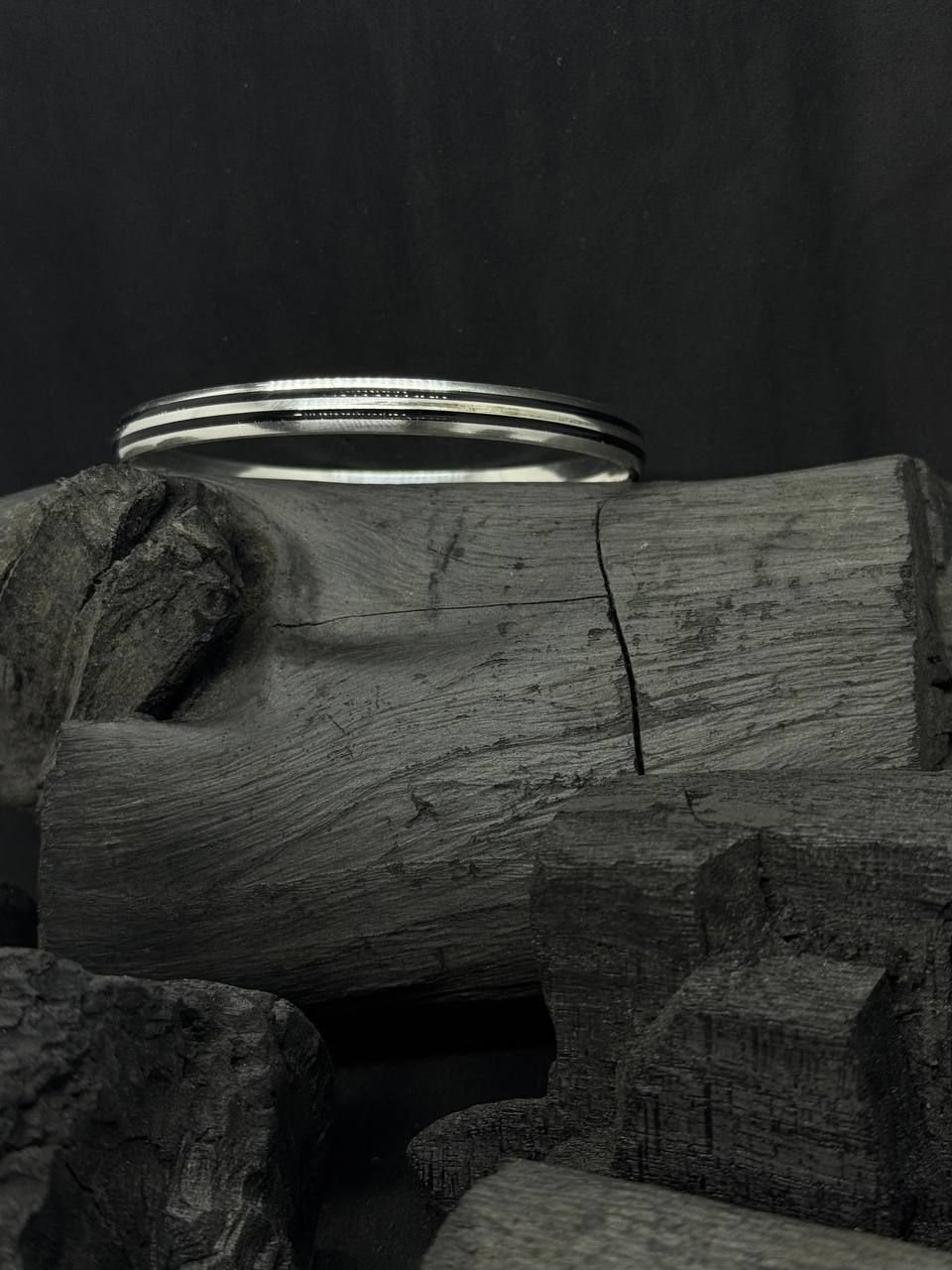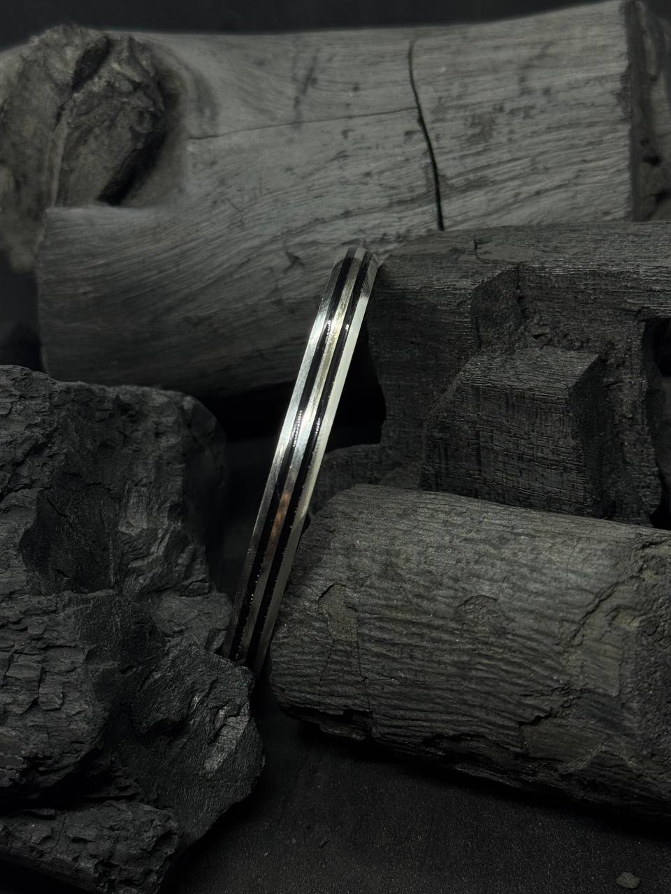Discover modern minimalism with a bold twist in the Black Design Kada by AJ Silver Jewellery. Expertly handcrafted from premium 925 silver, this sleek kada features a refined black enamel stripe running through its center, giving it a contemporary edge. The clean, polished finish and slim profile make it a versatile accessory — perfect for daily wear or adding a subtle statement to any outfit.