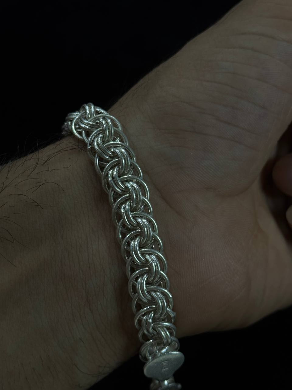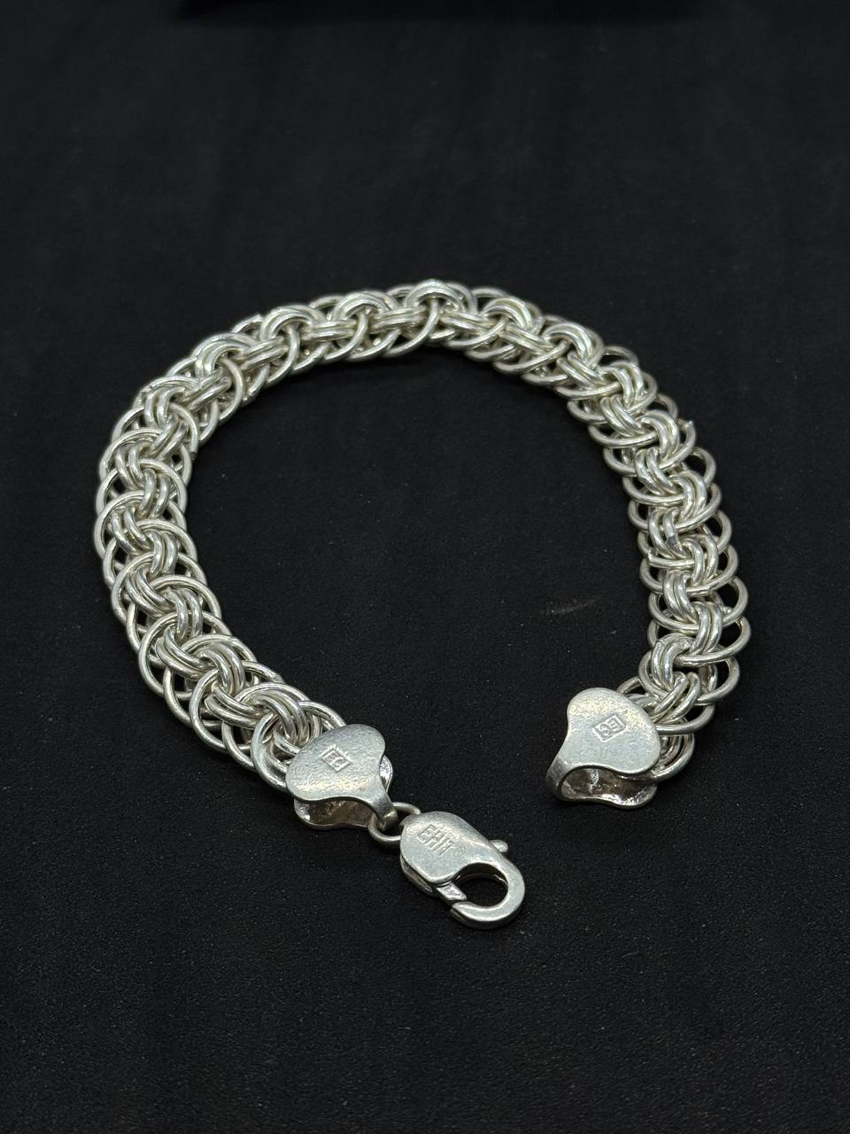Intricately crafted for those who appreciate strength and sophistication, this Bold Byzantine Weave Silver Bracelet is a true statement piece. Featuring a dense, interlocking chain pattern and secured with robust end caps and a sturdy lobster clasp, it offers both durability and distinctive style.