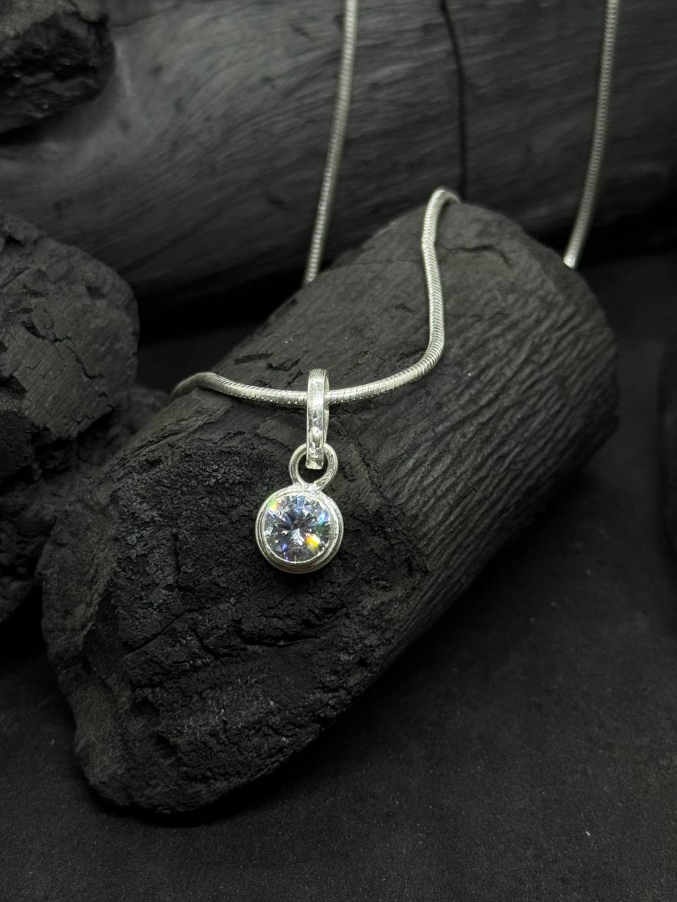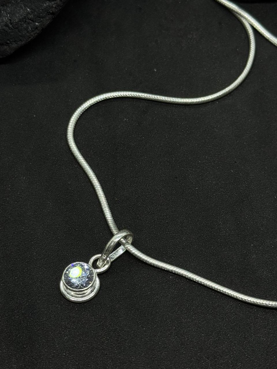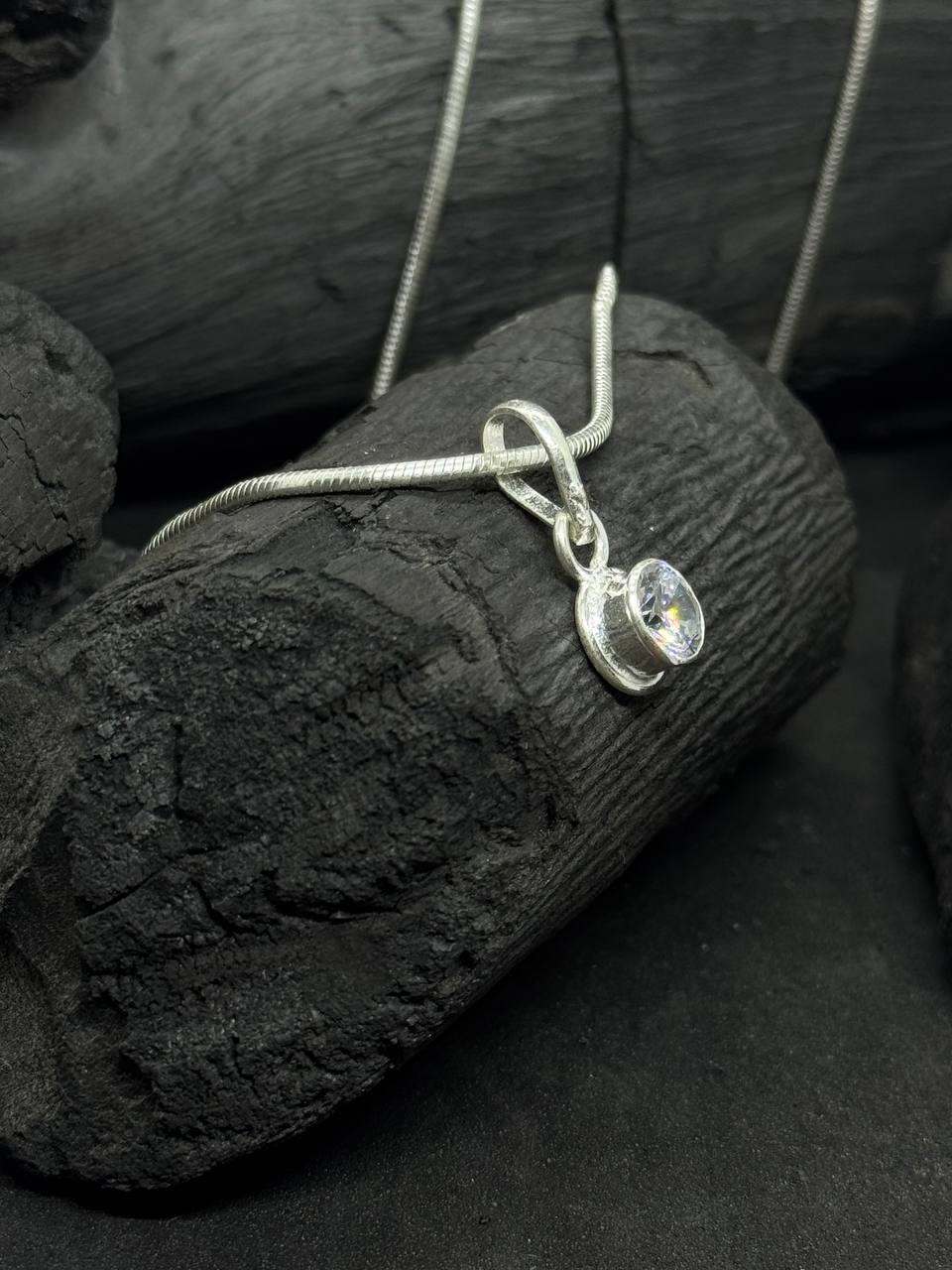 Add a touch of refined sparkle to your jewelry collection with the Crystal Glow Pendant, a timeless piece crafted in 925 sterling silver. The sleek, modern design holds a faceted round white stone (clear crystal or cubic zirconia), securely set in a smooth silver bezel.