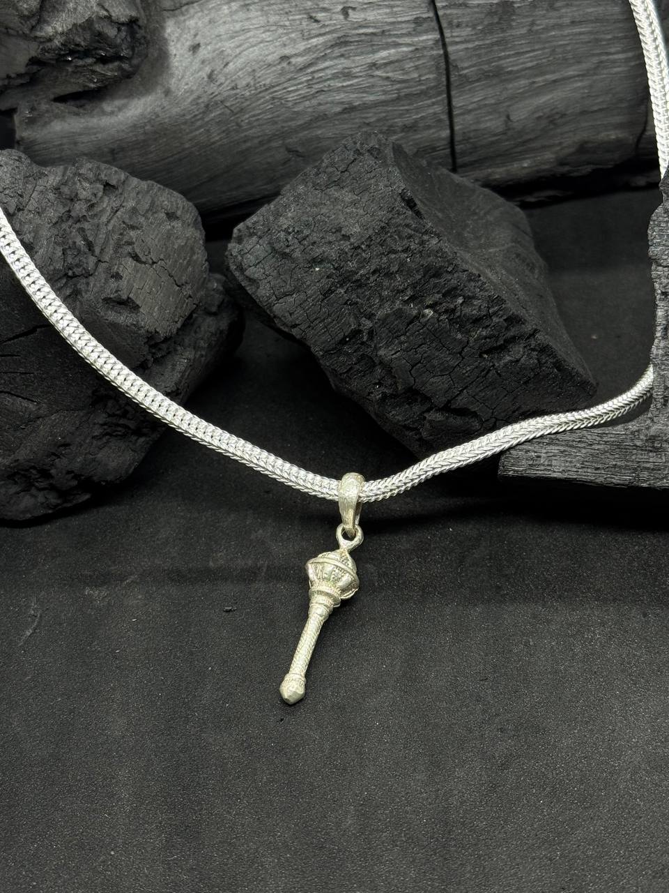 Invoke divine strength and unwavering devotion with this Gada Pendant Necklace, inspired by the legendary mace (Gada) carried by deities like Lord Hanuman and Lord Vishnu. This intricately crafted pendant is a symbol of power, protection, and inner discipline.