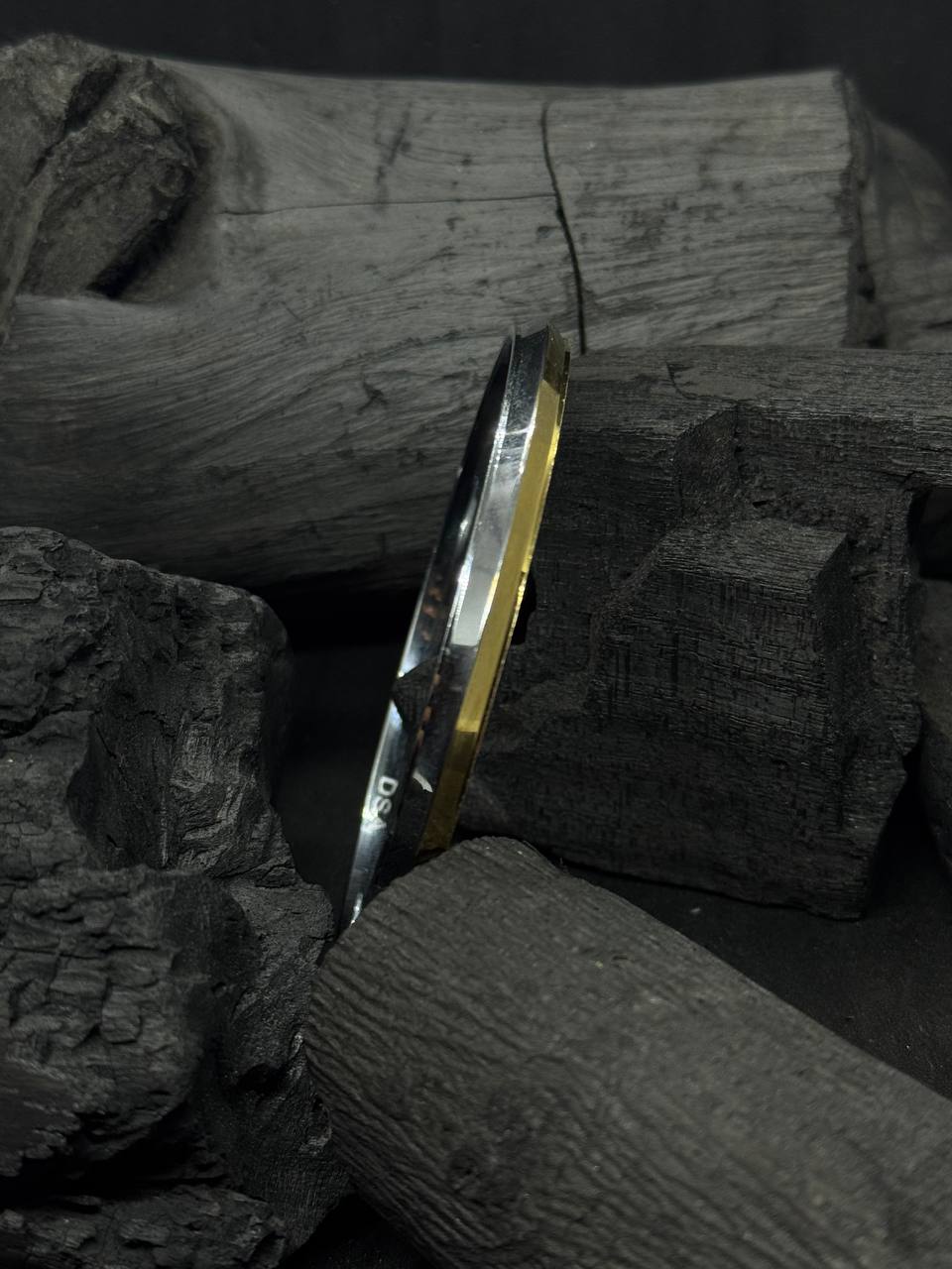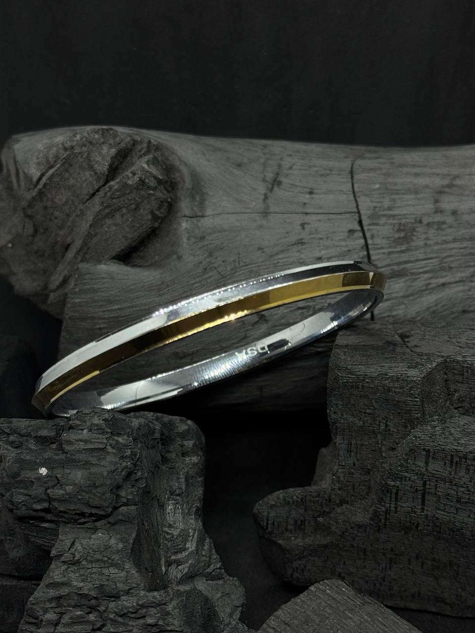 Refined simplicity meets regal charm in the Royal Edge Kada by AJ Silver Jewellery. Crafted from pure 925 silver, this striking bangle features a sleek, mirror-polished finish with a bold golden accent running along the edge — symbolizing power and prestige. The minimalistic design paired with a touch of gold makes it a versatile piece that can elevate both traditional and contemporary looks.